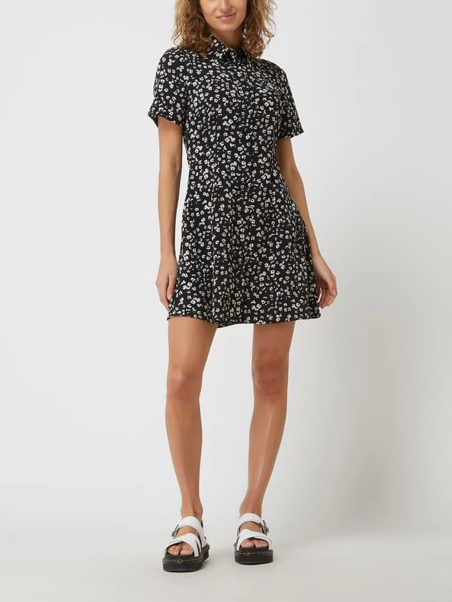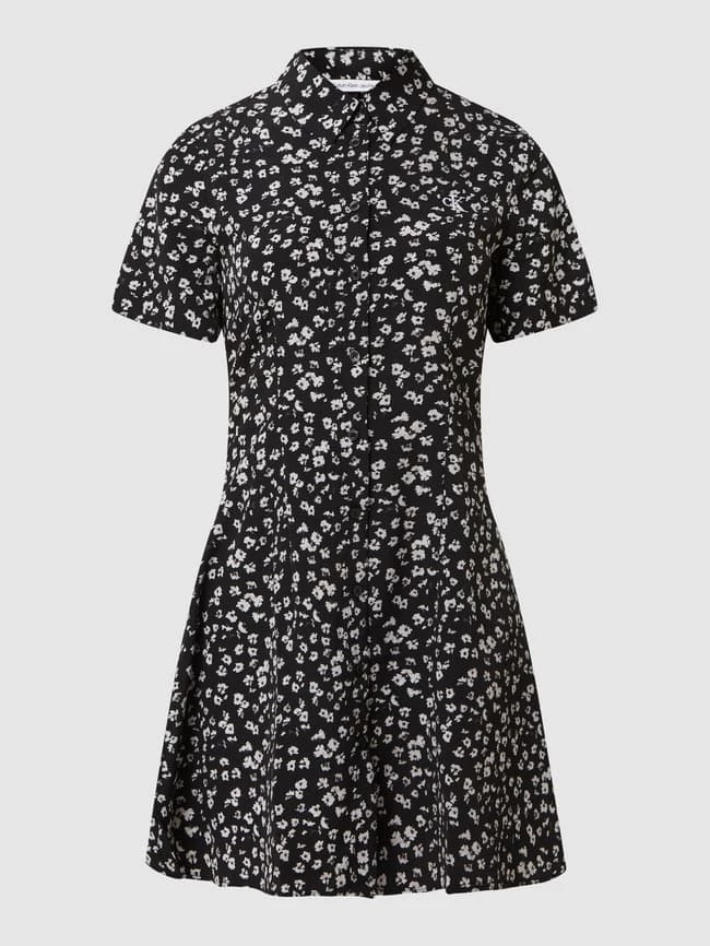 Das Blusenkleid von Calvin Klein Jeans ist aus leichtem Material gefertigt und tailliert geschnitten. Es kommt mit Umlegekragen, Knopfleiste und Logo-Print.
