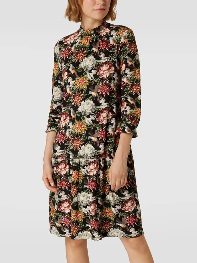 Das Blusenkleid von Christian Berg Men ist aus einem Viskose-Elasthan-Mix gefertigt und ausgestellt geschnitten. Es kommt mit Allover-Muster und Smok-Details.