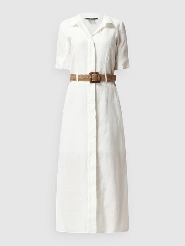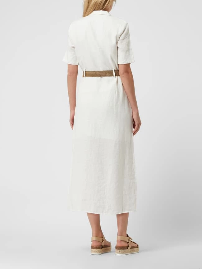 Das Blusenkleid von Esprit Collection ist aus reinem Leinen gefertigt. Es zeigt sich in taillierter Passform mit verdeckter Knopfleiste, kurzen Ärmeln und Gürtel in Flecht-Optik.