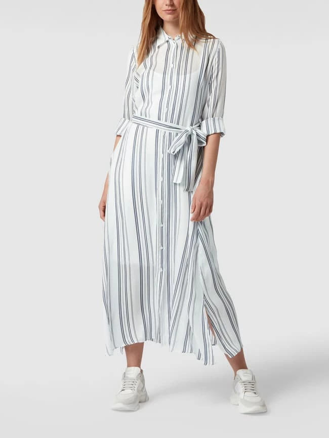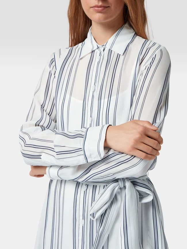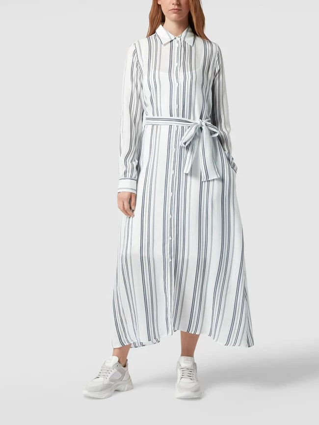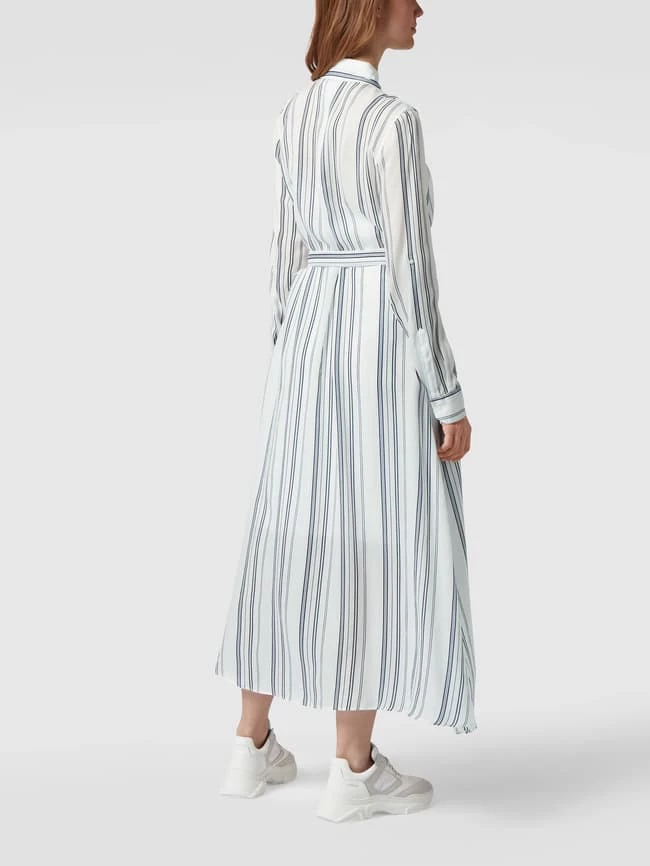 Das Hemdblusenkleid von HUGO ist aus Cupro gefertigt und locker geschnitten. Es kommt mit Streifenmuster, Knopfleiste und Taillengürtel.