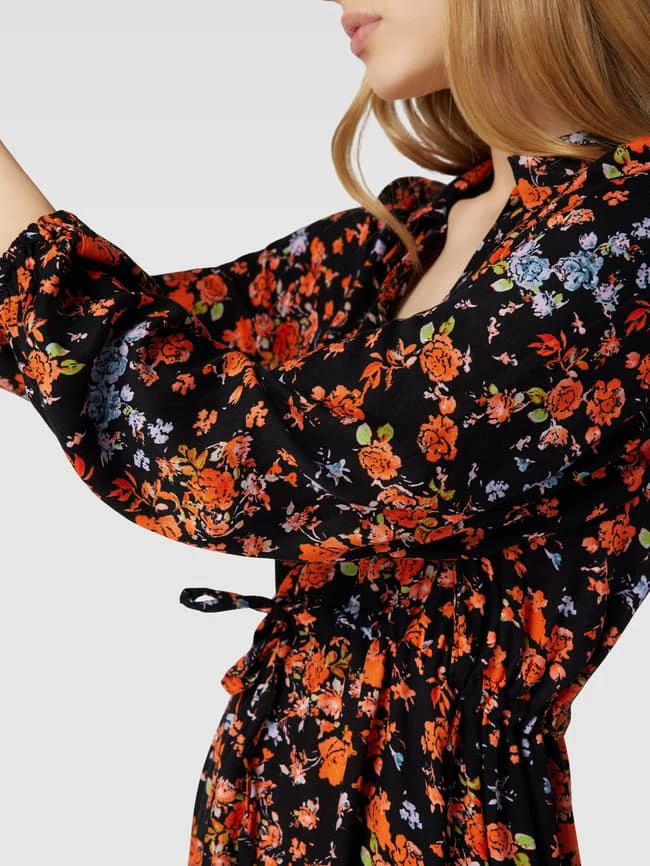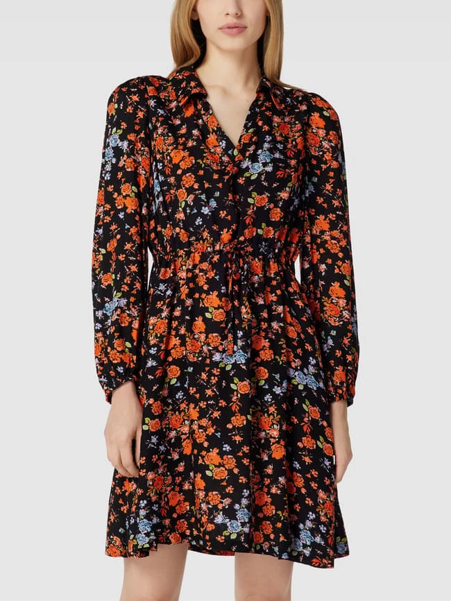 Das Blusenkleid von ICHI ist aus reiner Viskose gefertigt und locker geschnitten. Es kommt mit Allover-Muster, Umlegekragen, V-Ausschnitt und elastischen Ärmelabschlüssen.