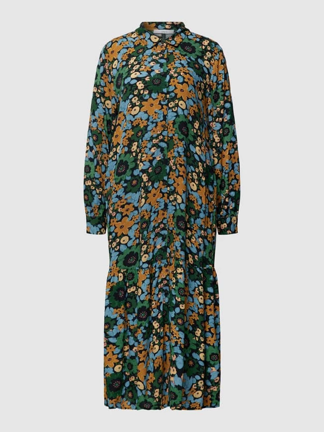 Das Blusenkleid von Jake*s Casual ist aus reiner Viskose gefertigt und ausgestellt geschnitten. Es kommt mit Allover-Muster, Kentkragen und Sportmanschetten.