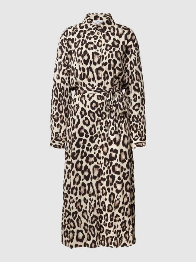 Das Hemdblusenkleid von Jake*s Casual ist aus einem Viskose-Lyocell-Mix gefertigt und tailliert geschnitten. Es kommt in Maxilänge mit Animal-Print, Taillenband und Sportmanschetten.