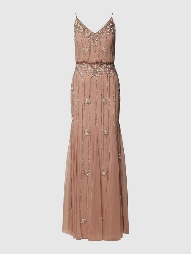 Das Abendkleid von Lace & Beads ist aus strapazierfähigem Material gefertigt und tailliert geschnitten. Es zeigt sich mit schmalen Trägern, V-Ausschnitt sowie Besatz aus Pailletten und Ziersteinen.