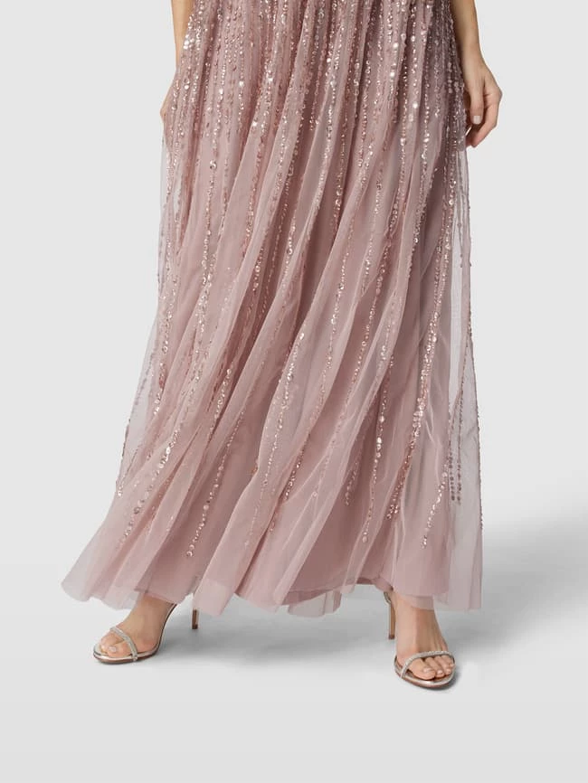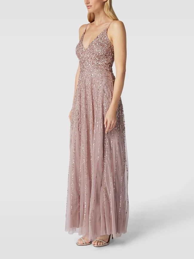 Das Abendkleid von Lace & Beads ist aus strapazierfähigem Material gefertigt und tailliert geschnitten. Es kommt mit Zierbesatz, Spaghettiträgern und V-Ausschnitt sowie ausgestellter Rockpartie.