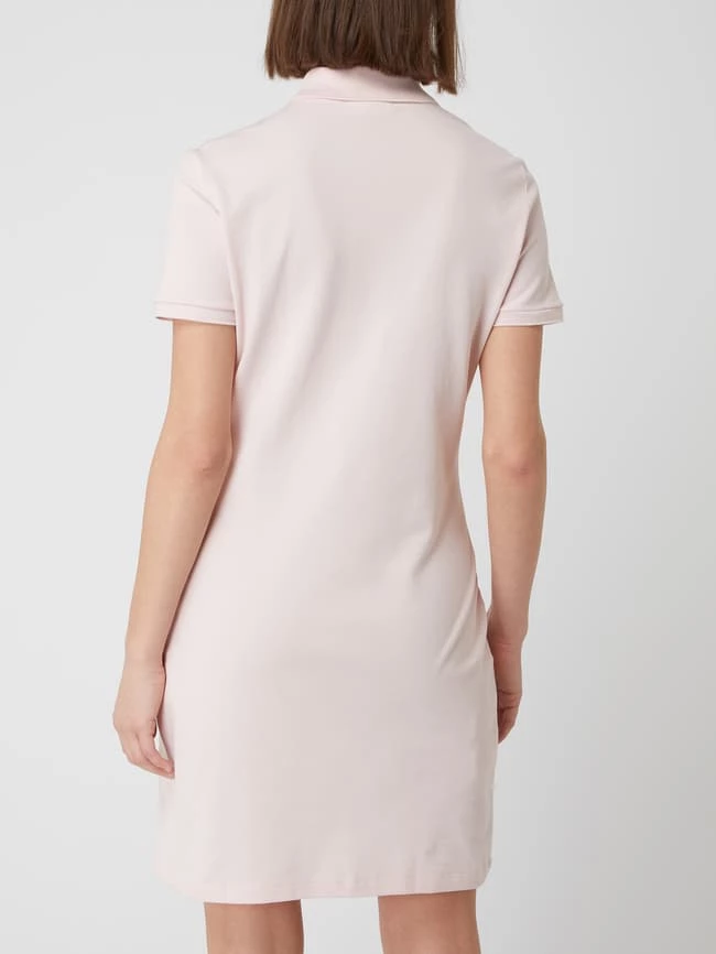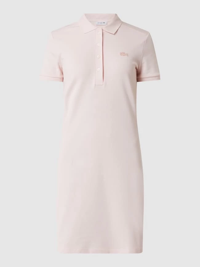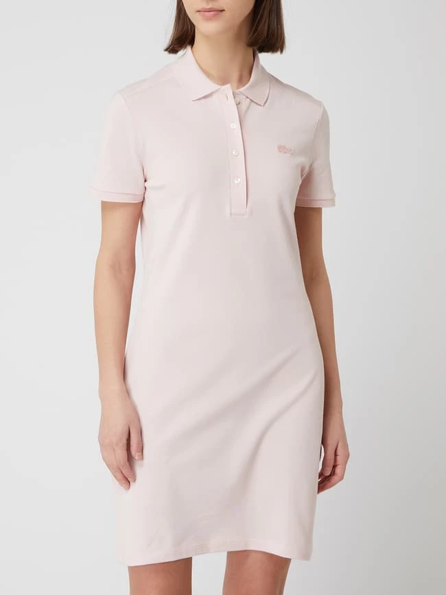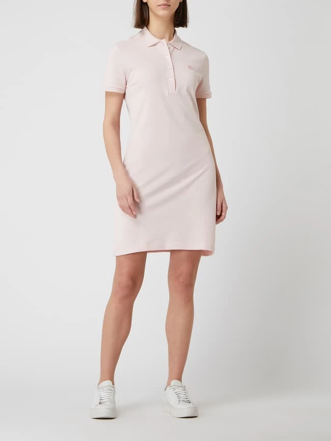 Das Polokleid von LACOSTE ist aus einem Baumwoll-Elasthan-Mix gefertigt. Es zeigt sich im Regular Fit mit kurzer Knopfleiste, kurzen Ärmeln und Logo.