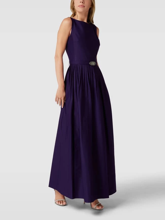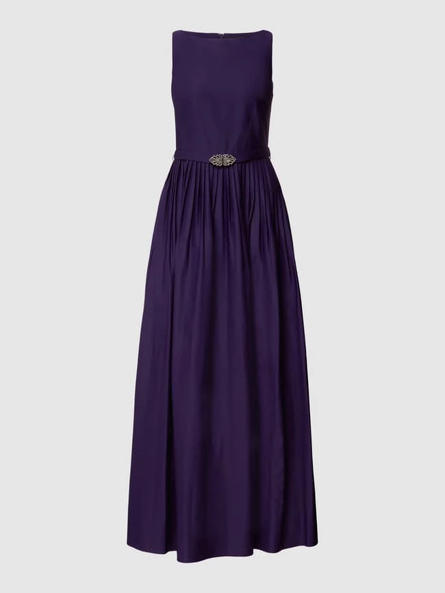 Das Abendkleid von Lauren Ralph Lauren ist aus strapazierfähigem Material gefertigt und tailliert geschnitten. Es kommt mit Plisseefalten, Taillengürtel und U-Boot-Ausschnitt.