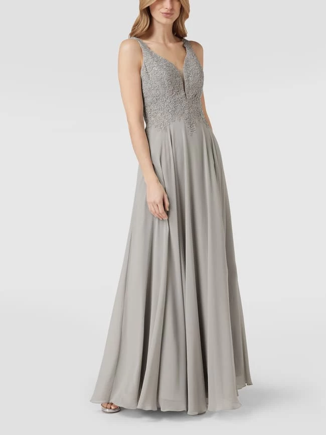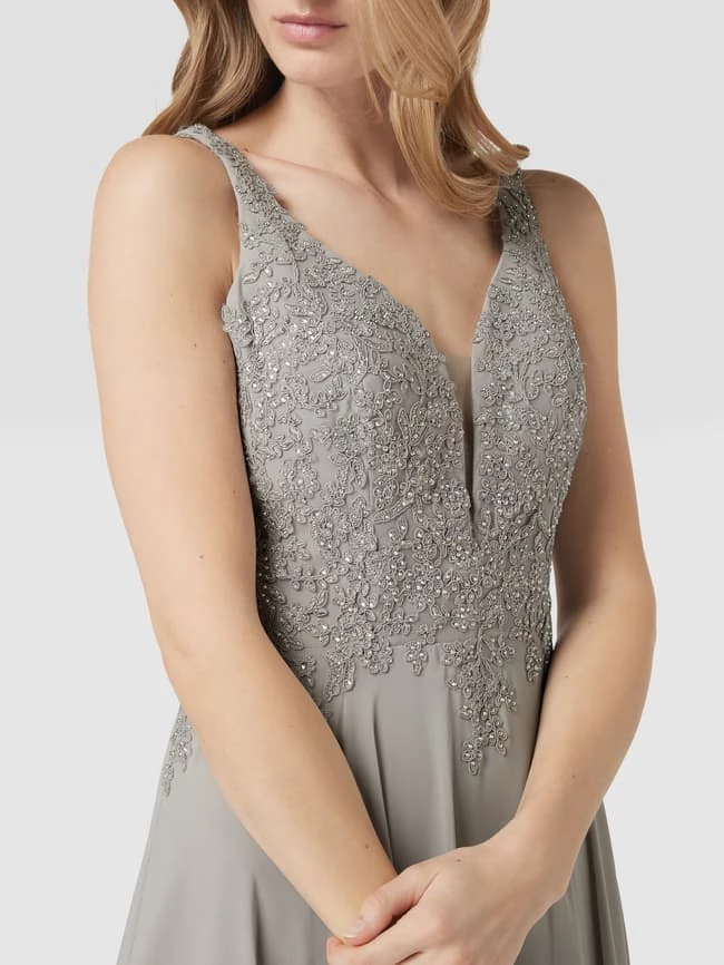 Das Abendkleid von LUXUAR FASHION ist aus strapazierfähigem Material gefertigt und tailliert geschnitten. Es kommt mit Zierbesatz, Herz-Ausschnitt und schmalen Trägern.