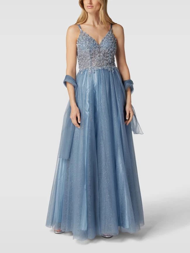 Das Abendkleid von LUXUAR FASHION ist aus strapazierfähigem Material gefertigt und tailliert geschnitten. Es kommt mit Zierbesatz, ausgestellter Rockpartie und Schnürung.