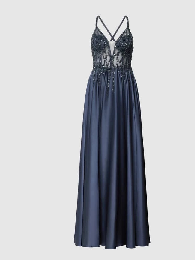 Das Abendkleid von LUXUAR FASHION ist aus einem Material-Mix gefertigt und im taillierten Schnitt gehalten. Es zeigt sich in unifarbenem Design mit Herz-Ausschnitt und Ziersteinbesatz.