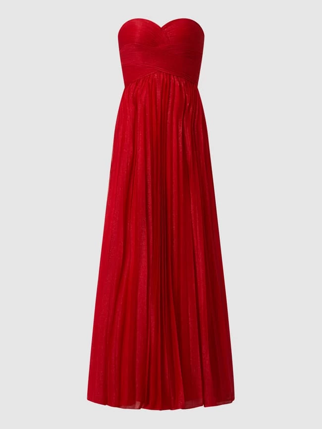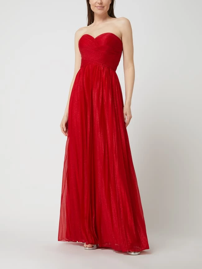 Das Corsagenkleid von LUXUAR LIMITED ist aus Krepp gefertigt und tailliert geschnitten. Es kommt mit abnehmbaren Glitter-Effekt, Drapierungen und plissiertem Rockteil.