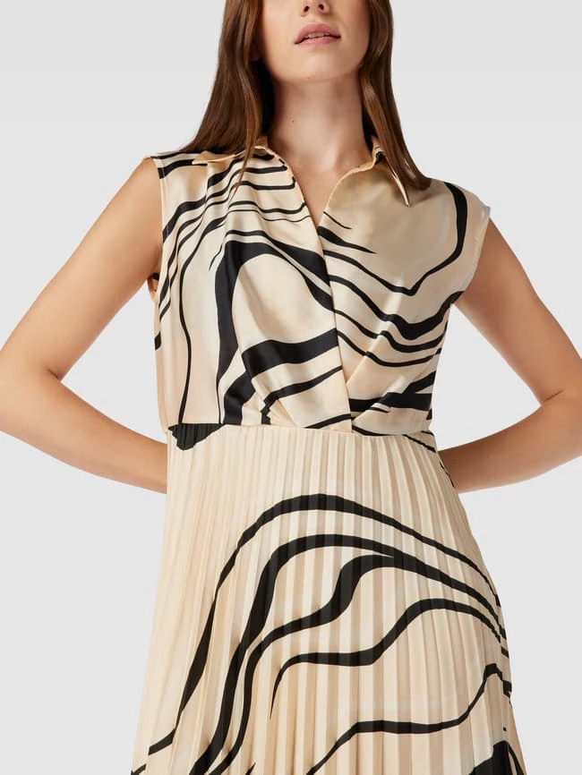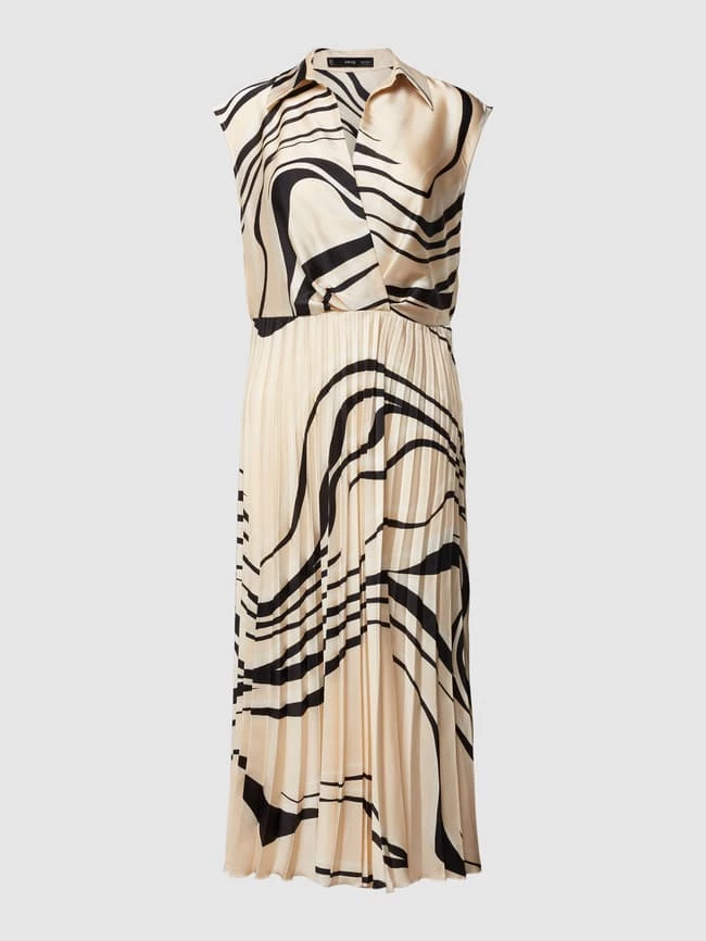 Das Blusenkleid von MANGO ist aus strapazierfähigem Material gefertigt und tailliert geschnitten. Es kommt mit Allover-Muster, Nahtreißverschluss und Plisseefalten.