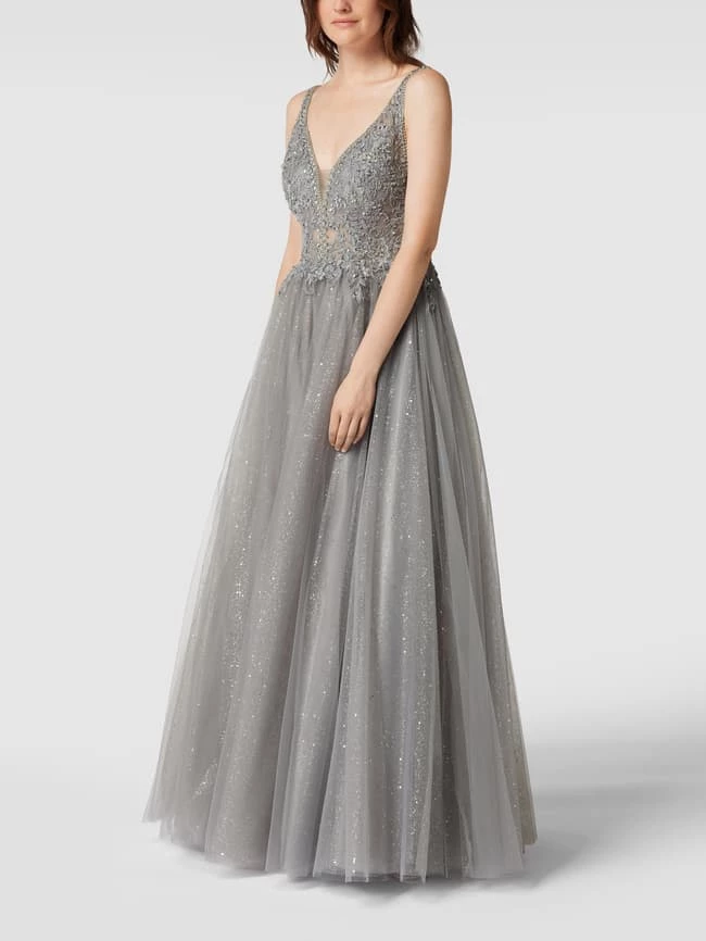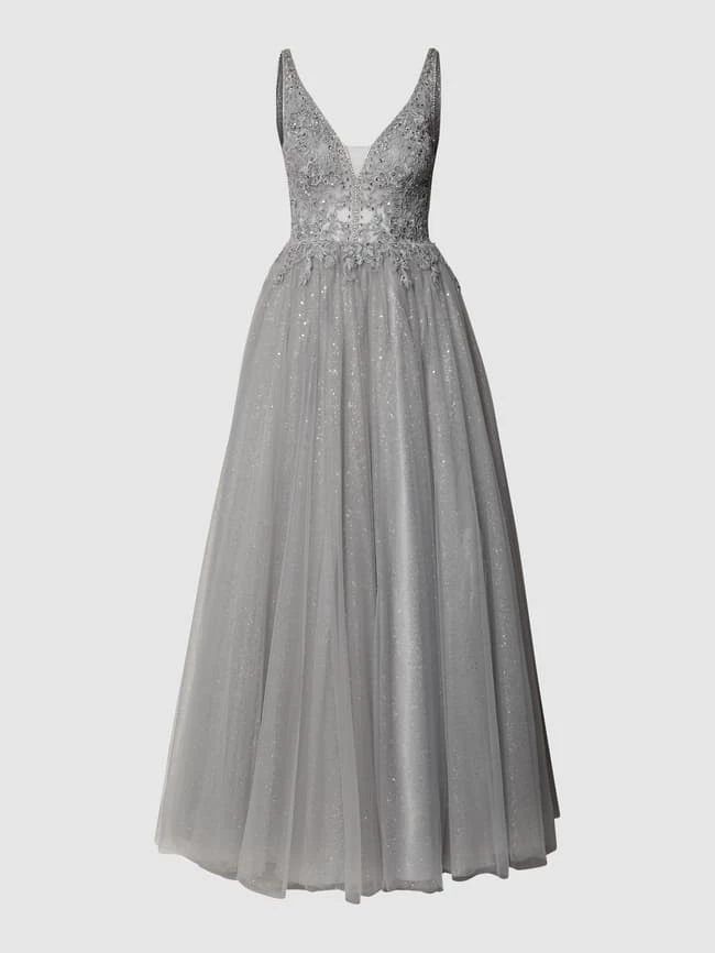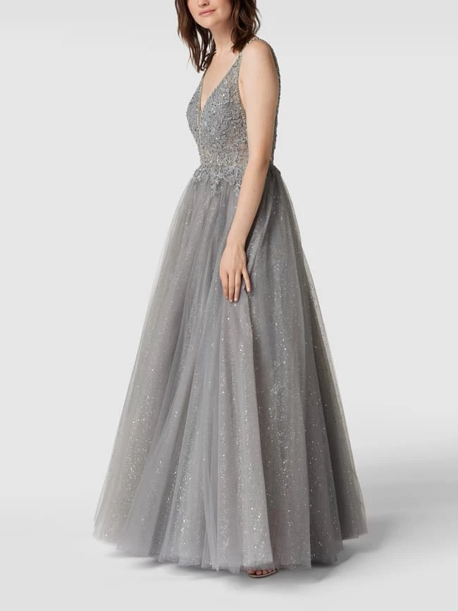 Das Abendkleid von Mascara ist aus strapazierfähigem Material gefertigt und tailliert geschnitten. Es kommt im ärmellosen Design mit V-Ausschnitt, floralen Stickereien, Ziersteinen und Glitter-Effekt.