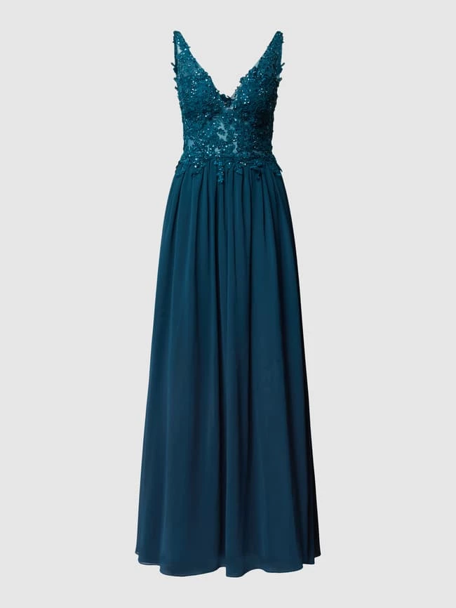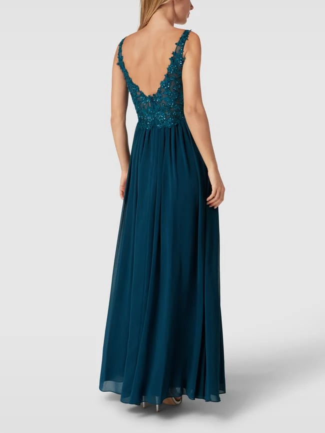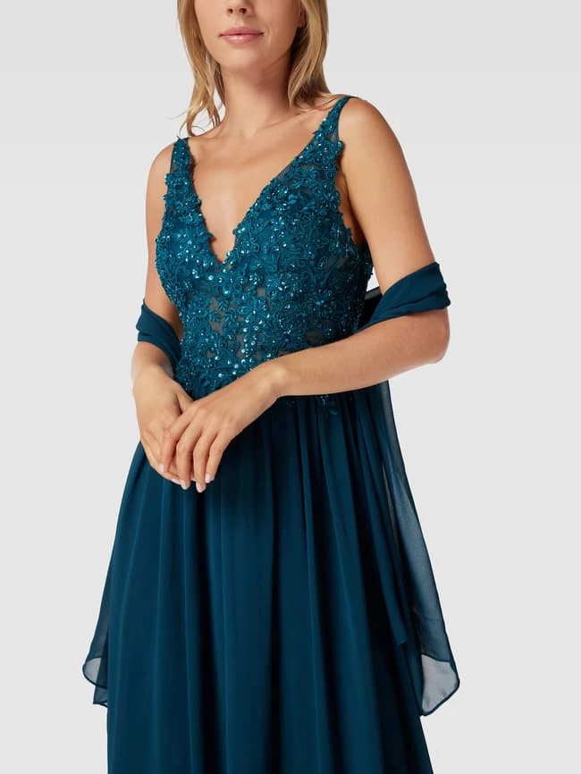 Das Abendkleid von Mascara ist aus strapazierfähigem Material gefertigt und tailliert geschnitten. Es kommt mit Zierbesatz, Herz-Ausschnitt und ausgestellter Rockpartie sowie blickdichtem Unterkleid.