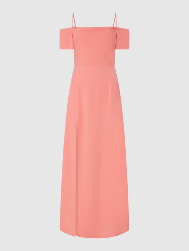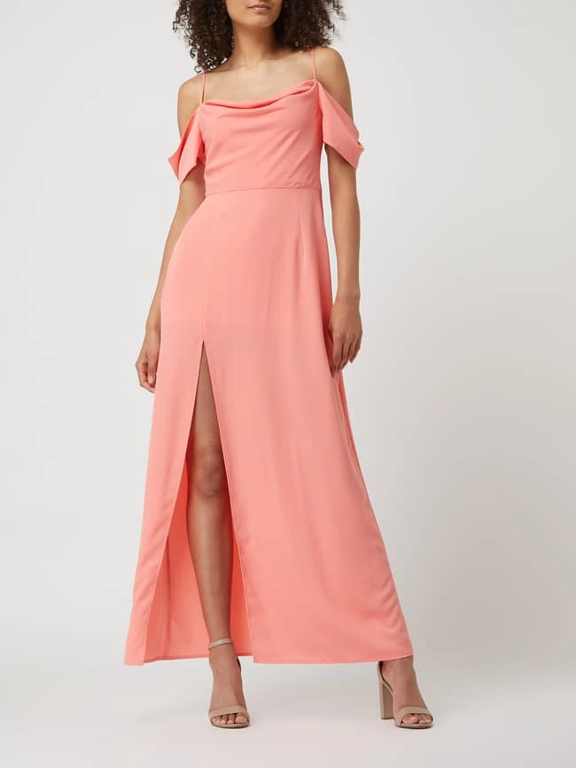 Das Off-Shoulder-Abendkleid von NA-KD ist aus recyceltem Polyester gefertigt und Teil der Kollektion PAMELA x NA-KD REBORN. Es kommt in taillierter Passform mit verstellbaren Spaghettiträgern, Nahtreißverschluss und leichtem Unterkleid. Das Besondere: Bei der verwendeten ‘REPREVE®’-Qualität handelt es sich um ein spezielles Garn, das aus recycelten Materialien produziert wird.
