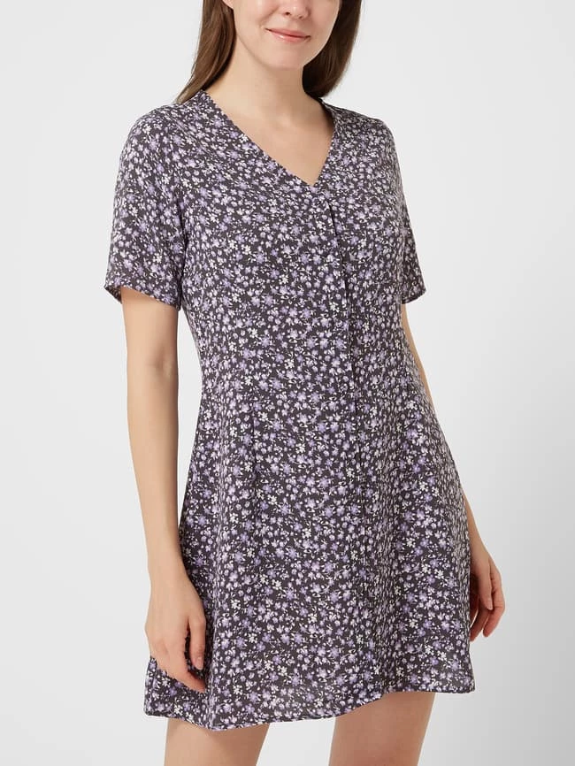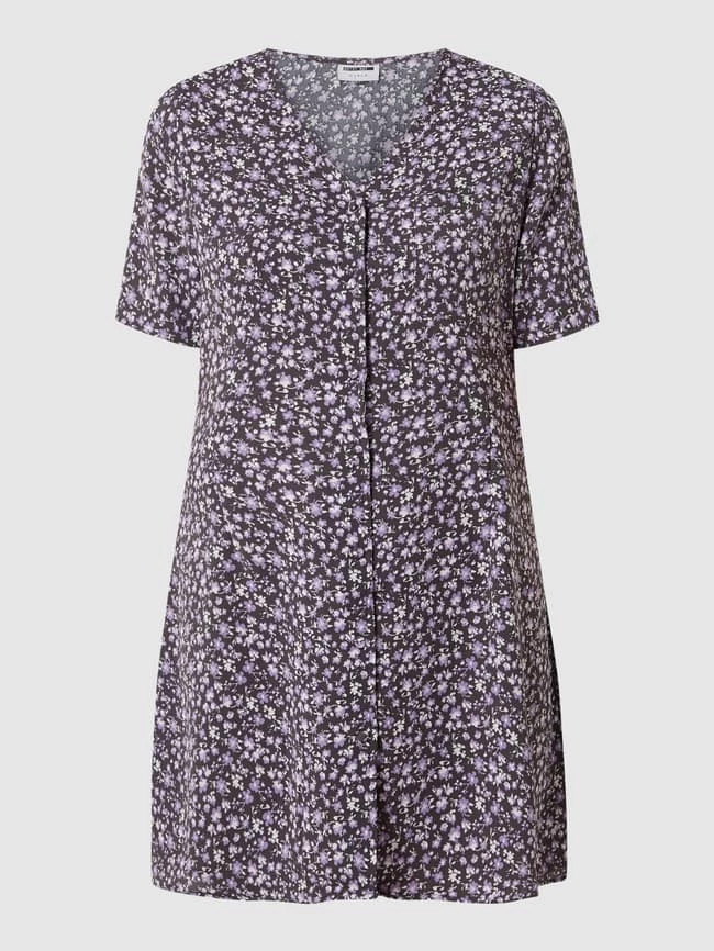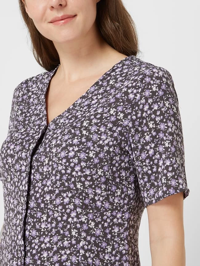 Das Blusenkleid von Noisy May ist aus leichtem Material gefertigt. Es zeigt sich in taillierter Passform mit Allover-Muster, kurzen Ärmeln und Brusttasche.
