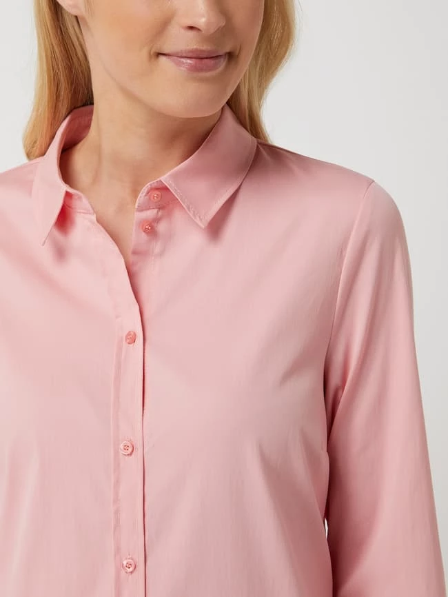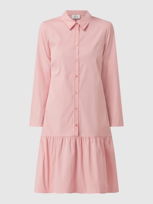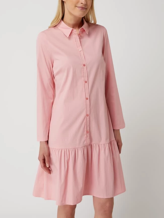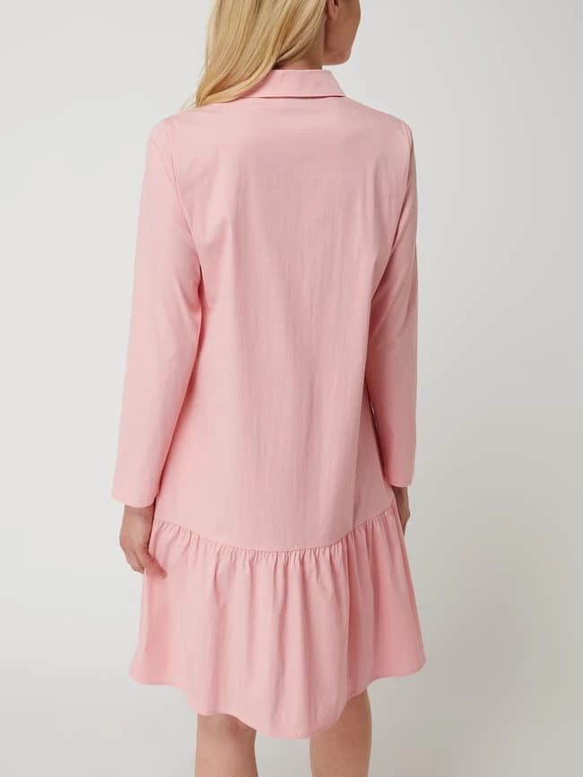 Das Blusenkleid von ROBE LÉGÈRE ist aus einer Baumwollmischung mit Stretch-Anteil gefertigt. Es kommt in ausgestellter Passform mit Umlegekragen, Knopfleiste und Volantsaum.