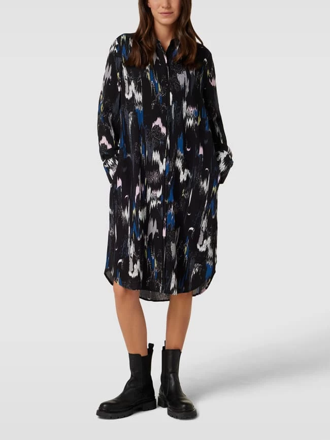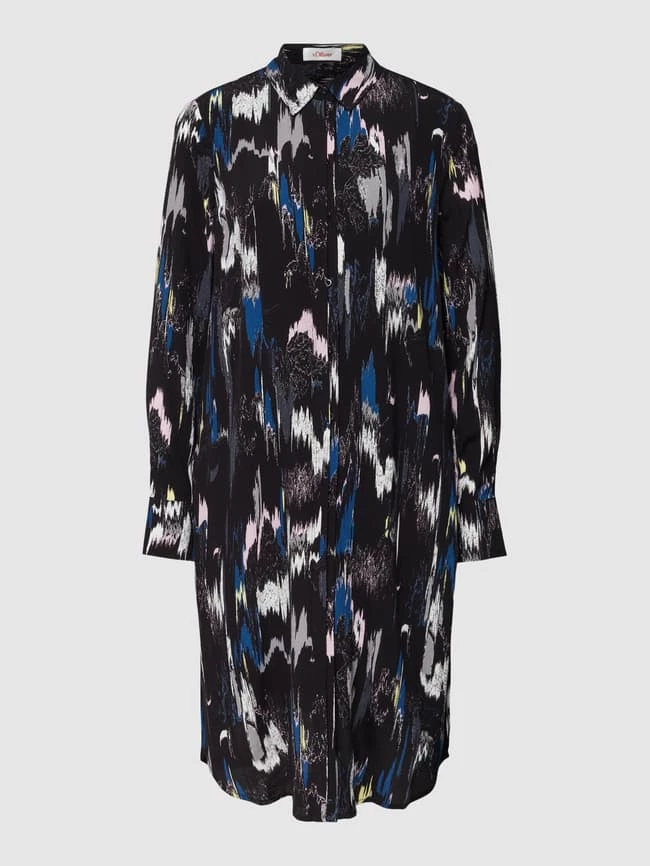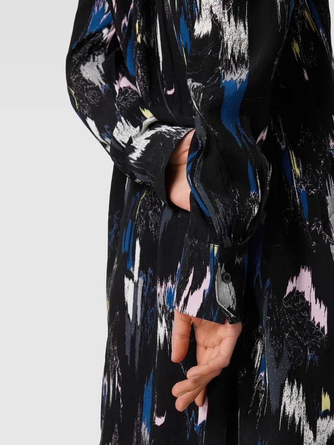 Das Blusenkleid von s.Oliver RED LABEL ist aus reiner Viskose gefertigt und locker geschnitten. Es zeigt sich mit Allover-Muster und verdeckter Knopfleiste.