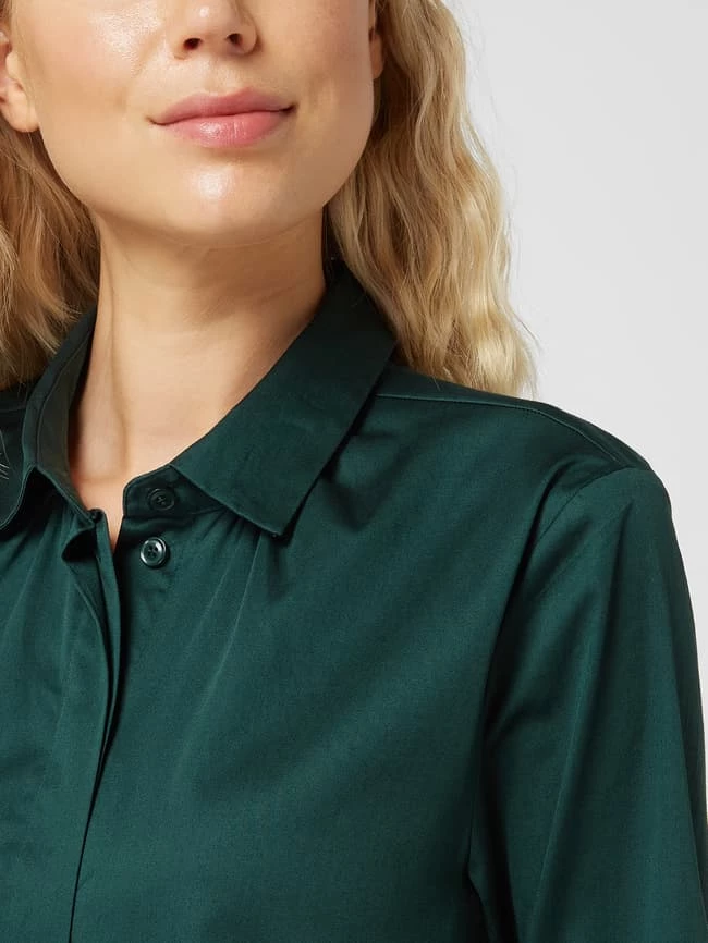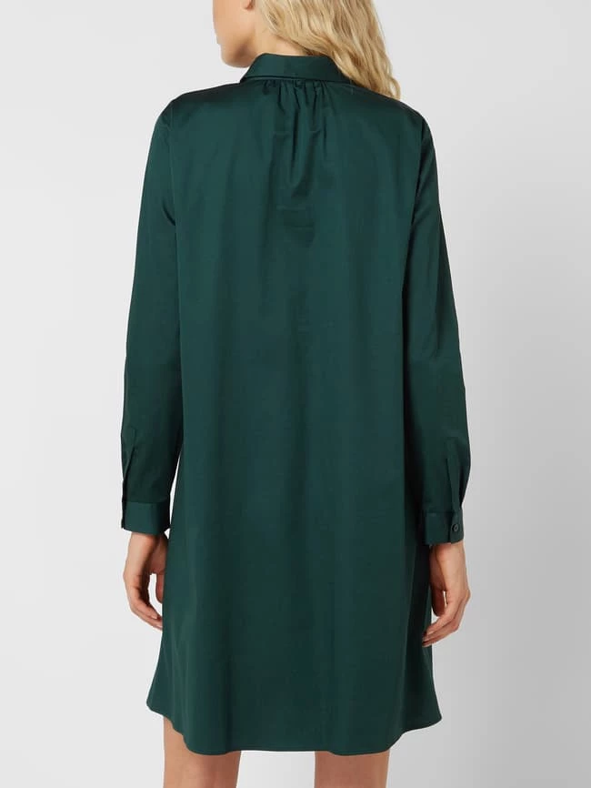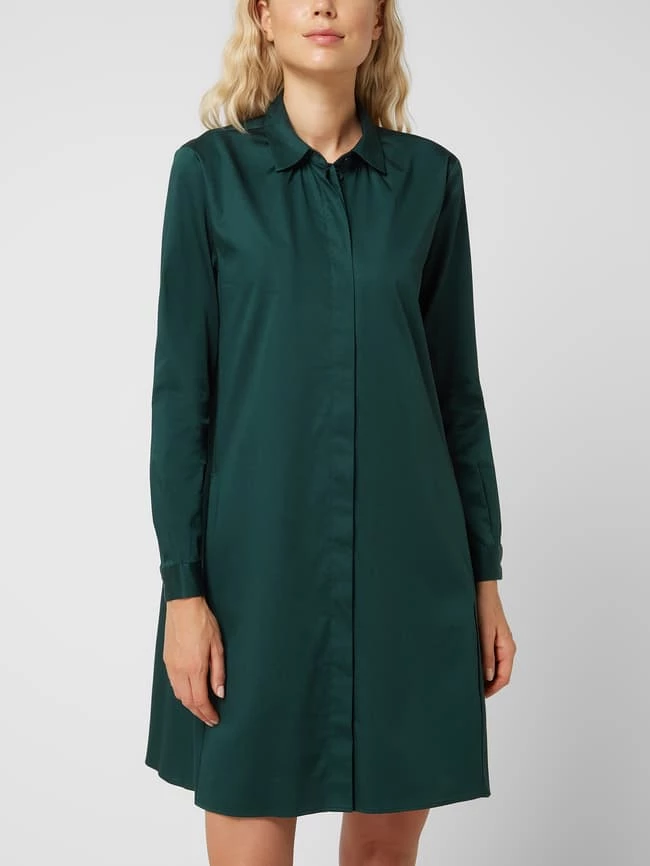 Das Blusenkleid von Seidensticker ist aus einem Baumwoll-Elatshan-Mix gefertigt und ausgestellt geschnitten. Es kommt mit Umlegekragen, verdeckter Knopfleiste und 1-Knopf-Manschetten.
