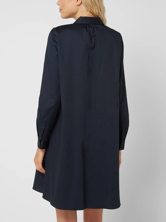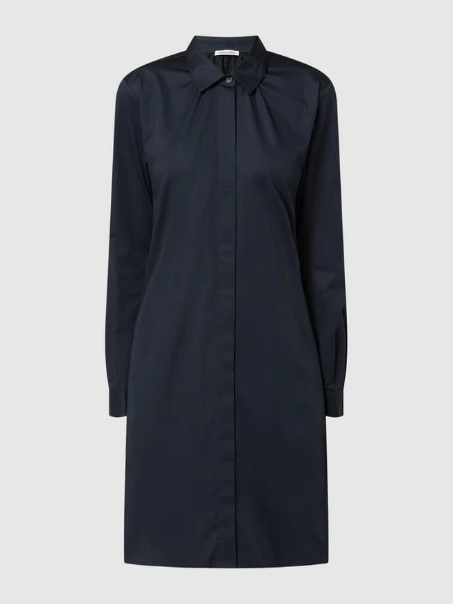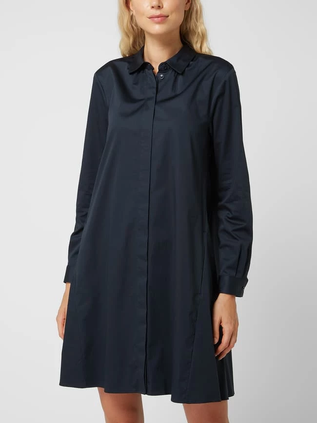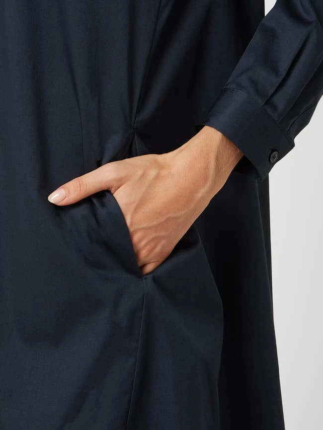 Das Blusenkleid von Seidensticker ist aus einem Baumwoll-Elatshan-Mix gefertigt und ausgestellt geschnitten. Es kommt mit Umlegekragen, verdeckter Knopfleiste und 1-Knopf-Manschetten.