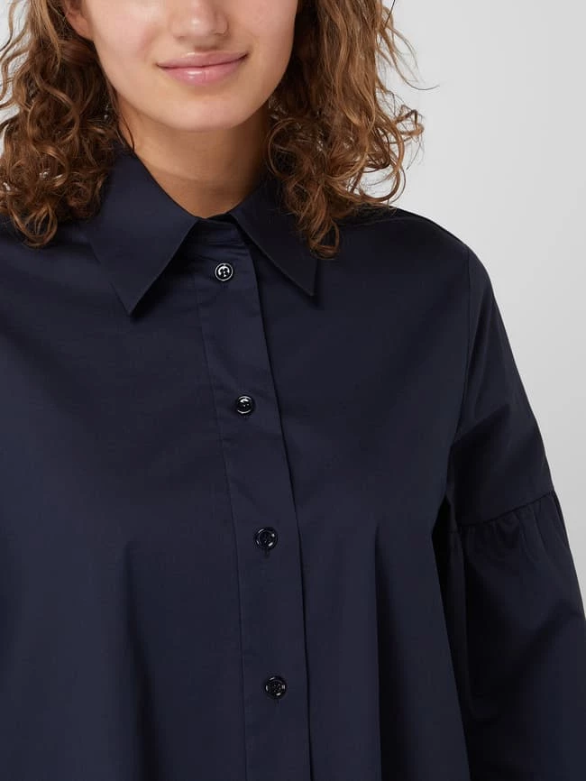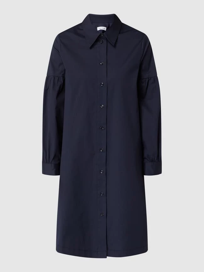 Das Blusenkleid von Seidensticker ist aus einem Baumwoll-Elasthan-Mix gefertigt. Es kommt in ausgestellter Passform mit Umlegekragen, Ballonärmeln und Eingrifftaschen.