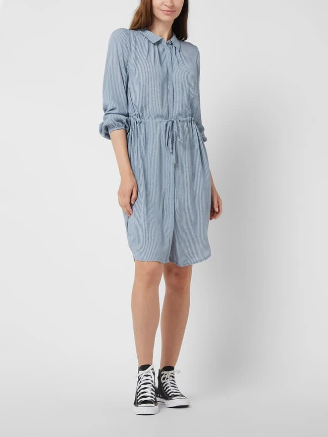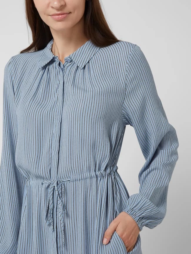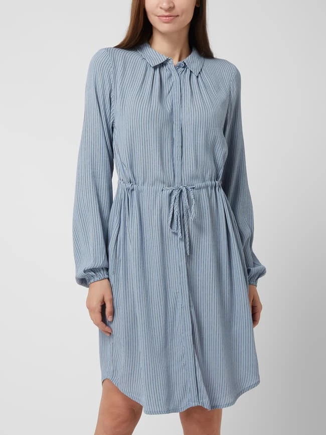 Das Blusenkleid von Soft Rebels ist aus reiner Viskose gefertigt und tailliert geschnitten. Es kommt mit Allover-Muster, Umlegekragen und verdeckter Knopfleiste.