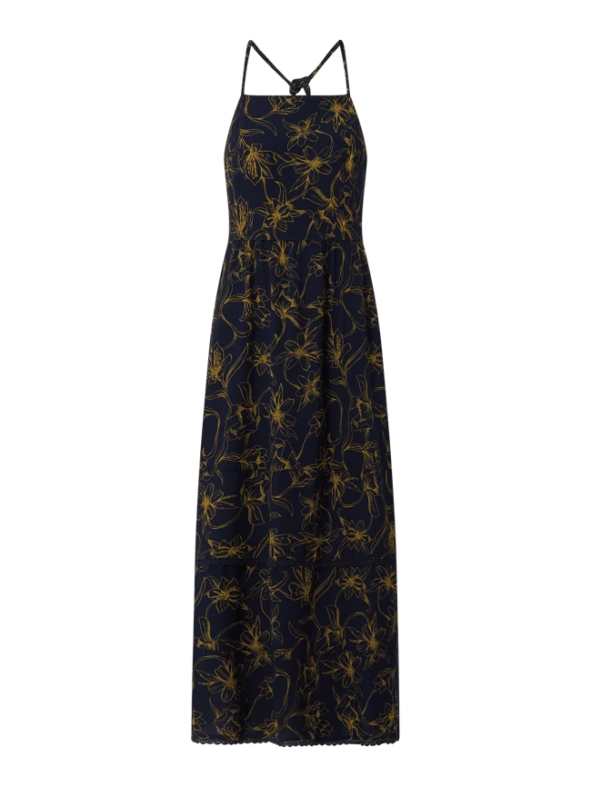 Das Maxikleid von Superdry ist aus reiner Viskose gefertigt und tailliert geschnitten. Es zeigt sich mit floralem Muster, Karree-Ausschnitt und gekreuzten Spaghettiträgern.