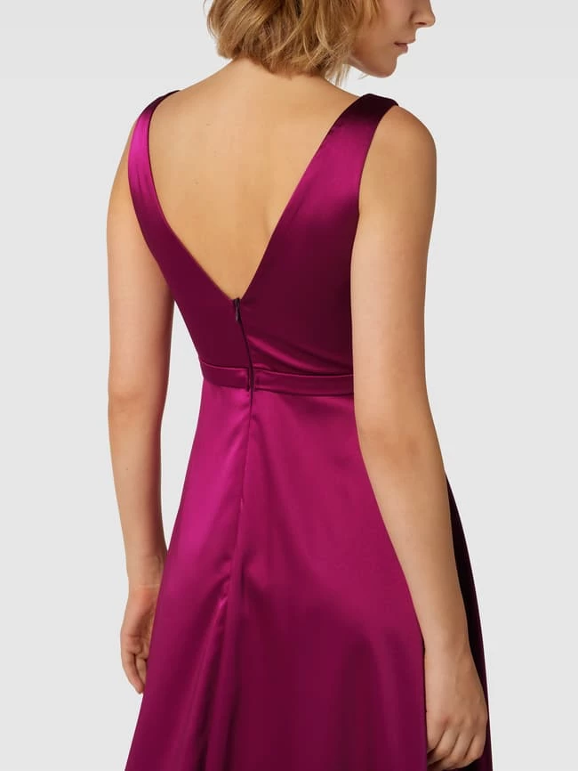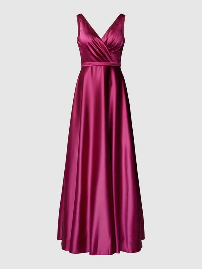 Das Abendkleid von TROYDEN COLLECTION ist aus einem strapazierfähigen Material gefertigt und tailliert geschnitten. Es zeigt sich in Wickel-Optik mit V-Ausschnitt und breiten Trägern.