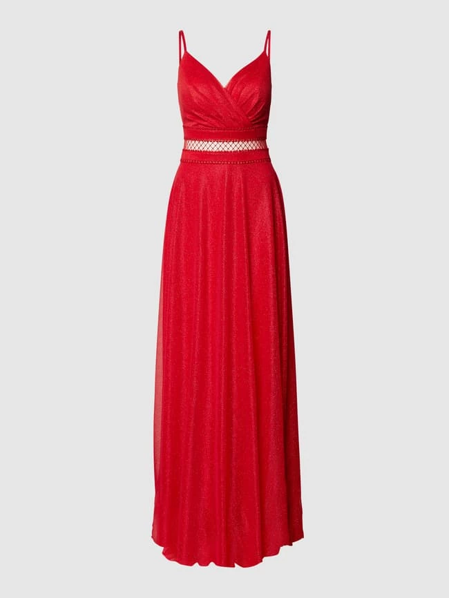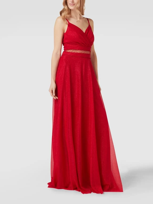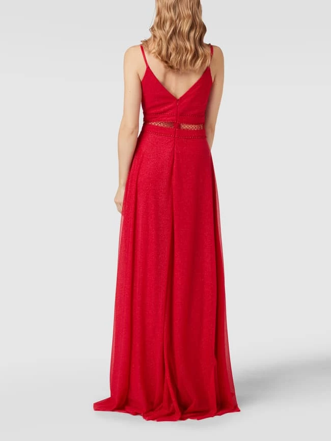Das Abendkleid von TROYDEN COLLECTION ist aus strapazierfähigem Material gefertigt und tailliert geschnitten. Es kommt mit Spaghettiträgern, Effektgarn und V-Ausschnitt sowie semitransparentem Einsatz.