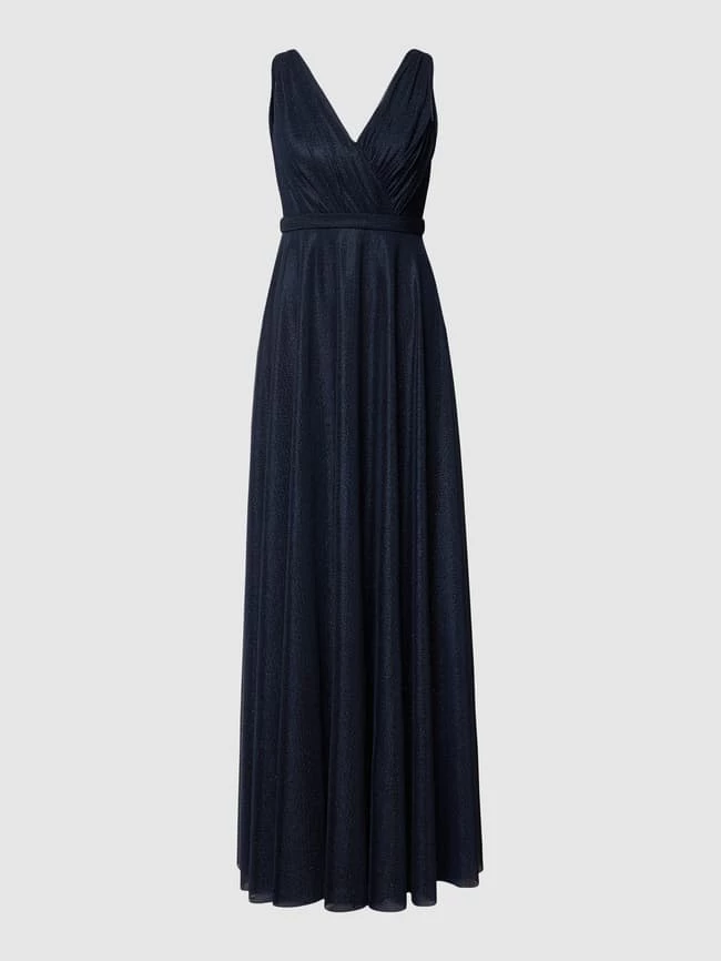 Das Abendkleid von TROYDEN COLLECTION ist aus schimmerndem Material gefertigt und tailliert geschnitten. Es kommt mit Taillenpasse und V-Ausschnitt sowie Oberteil mit Raffungen.