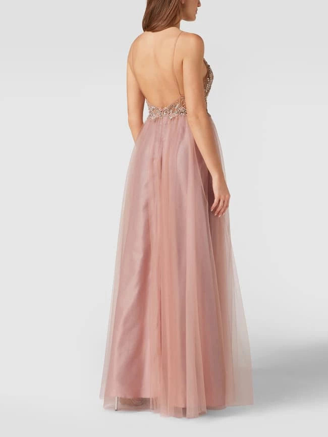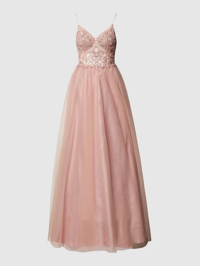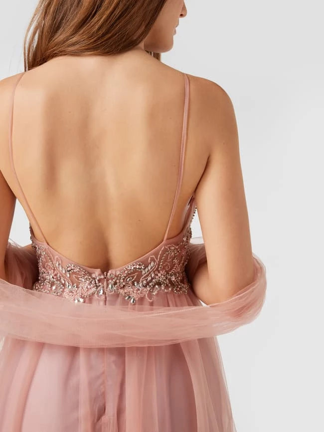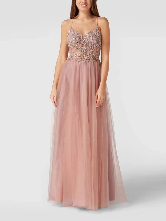 Das Abendkleid von unique ist aus robustem Material gefertigt und gerade geschnitten. Es kommt mit Spaghettiträgern, Zierperlen und Strasssteinen sowie Herz-Ausschnitt und Spitzenbesatz.