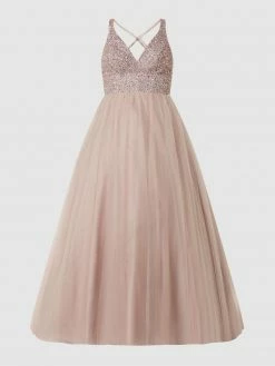 Das Cocktailkleid von unique ist aus strapazierfähigem Material gefertigt und tailliert geschnitten. Es kommt in Wickel-Optik mit Herzausschnitt, Spaghettiträgern und tiefem Rückenausschnitt.
