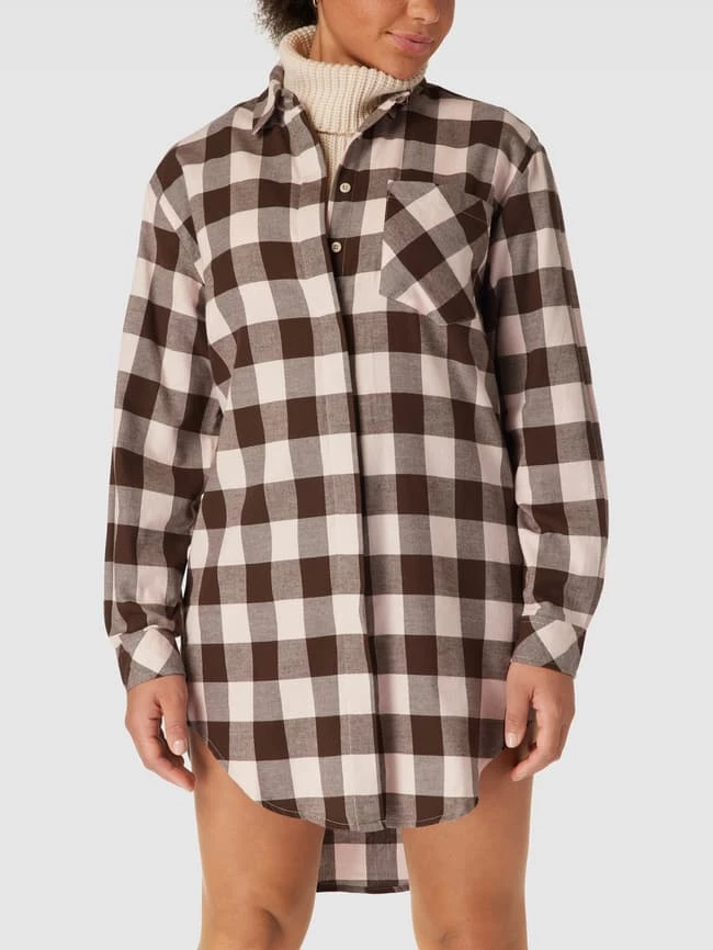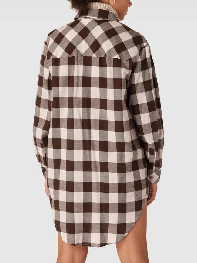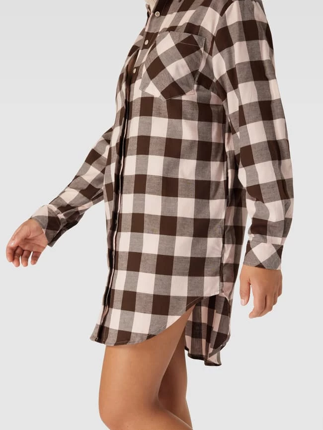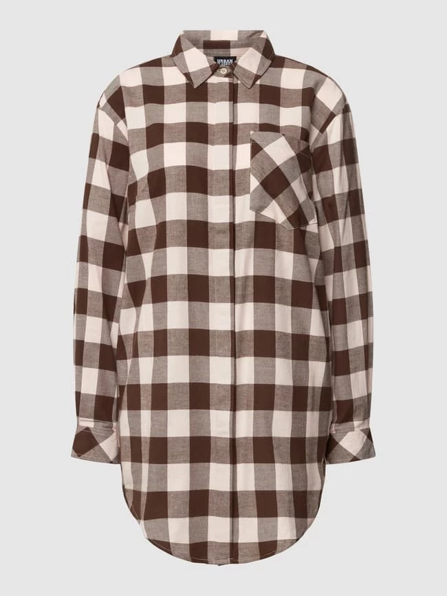 Das Hemdblusenkleid von URBAN CLASSICS ist aus reiner Baumwolle gefertigt und locker geschnitten. Es kommt mit Karomuster, Brusttasche und verdeckter Knopfleiste.