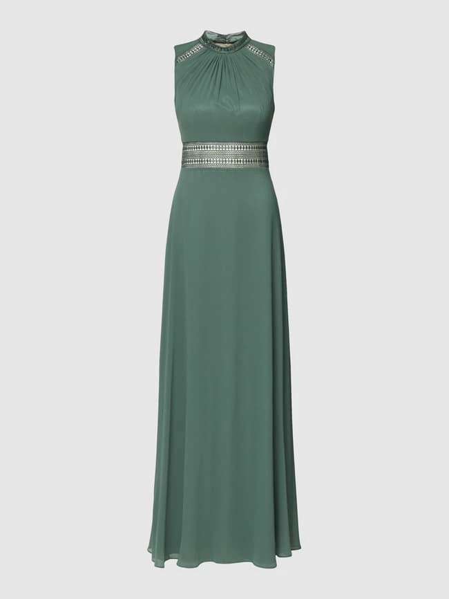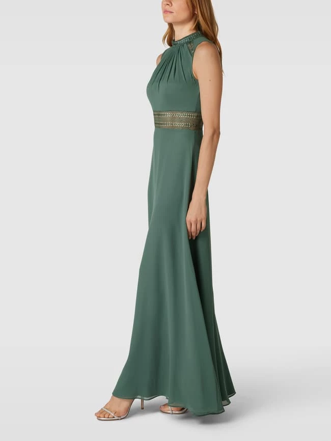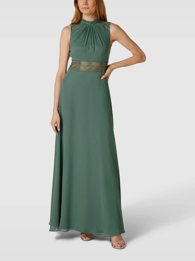Das Abendkleid von VM Vera Mont ist aus strapazierfähigem Material gefertigt und tailliert geschnitten. Es kommt mit tiefem Rückenausschnitt, Stehkragen und Lochstickereien.