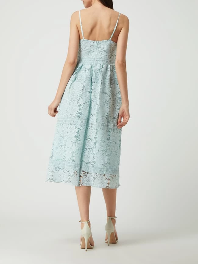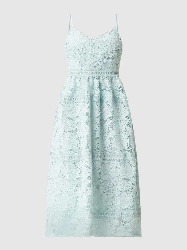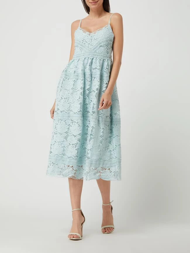 Das Kleid von Y.A.S ist aus Häkelspitze gefertigt. Es kommt in taillierter Passform mit V-Ausschnitt, verstellbaren Trägern und Nahtreißverschluss auf der Rückseite.