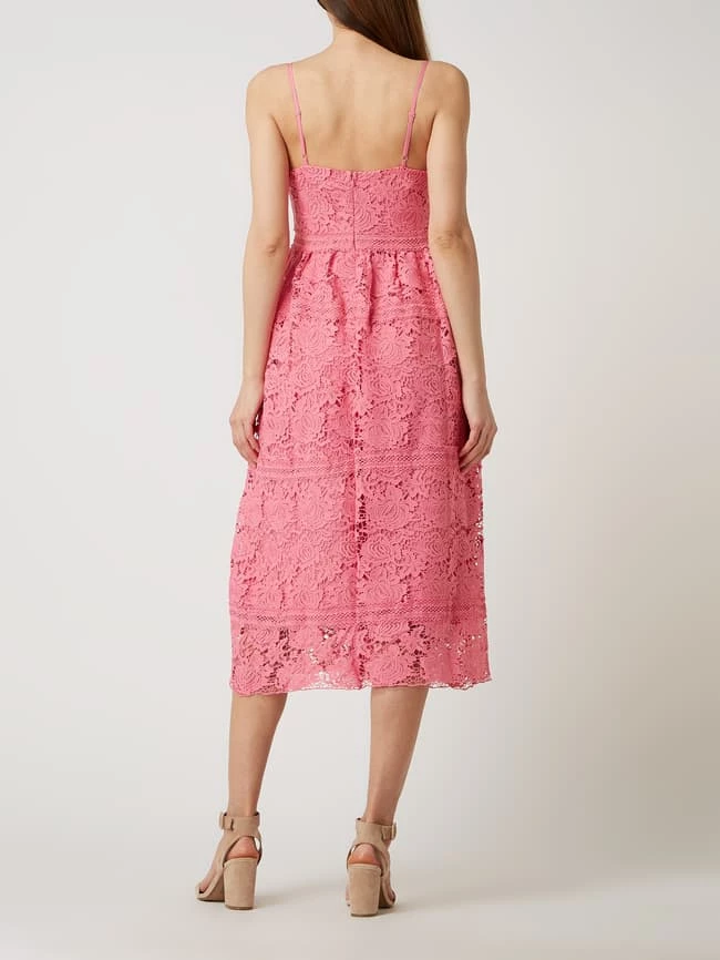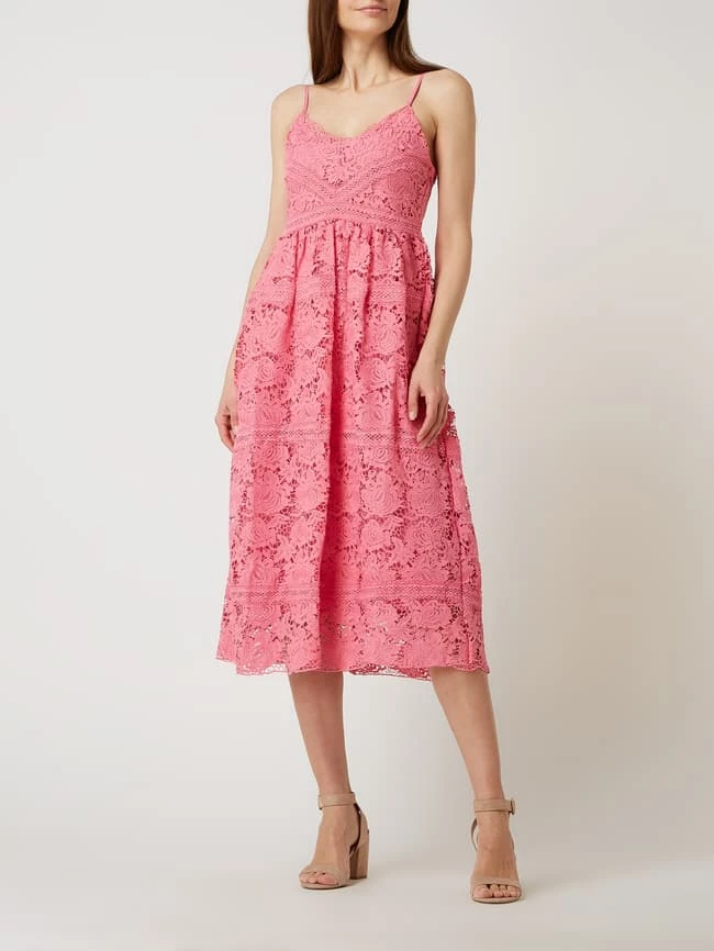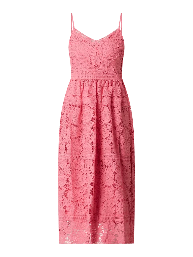 Das Kleid von Y.A.S ist aus Häkelspitze gefertigt. Es kommt in taillierter Passform mit V-Ausschnitt, verstellbaren Trägern und Nahtreißverschluss auf der Rückseite.